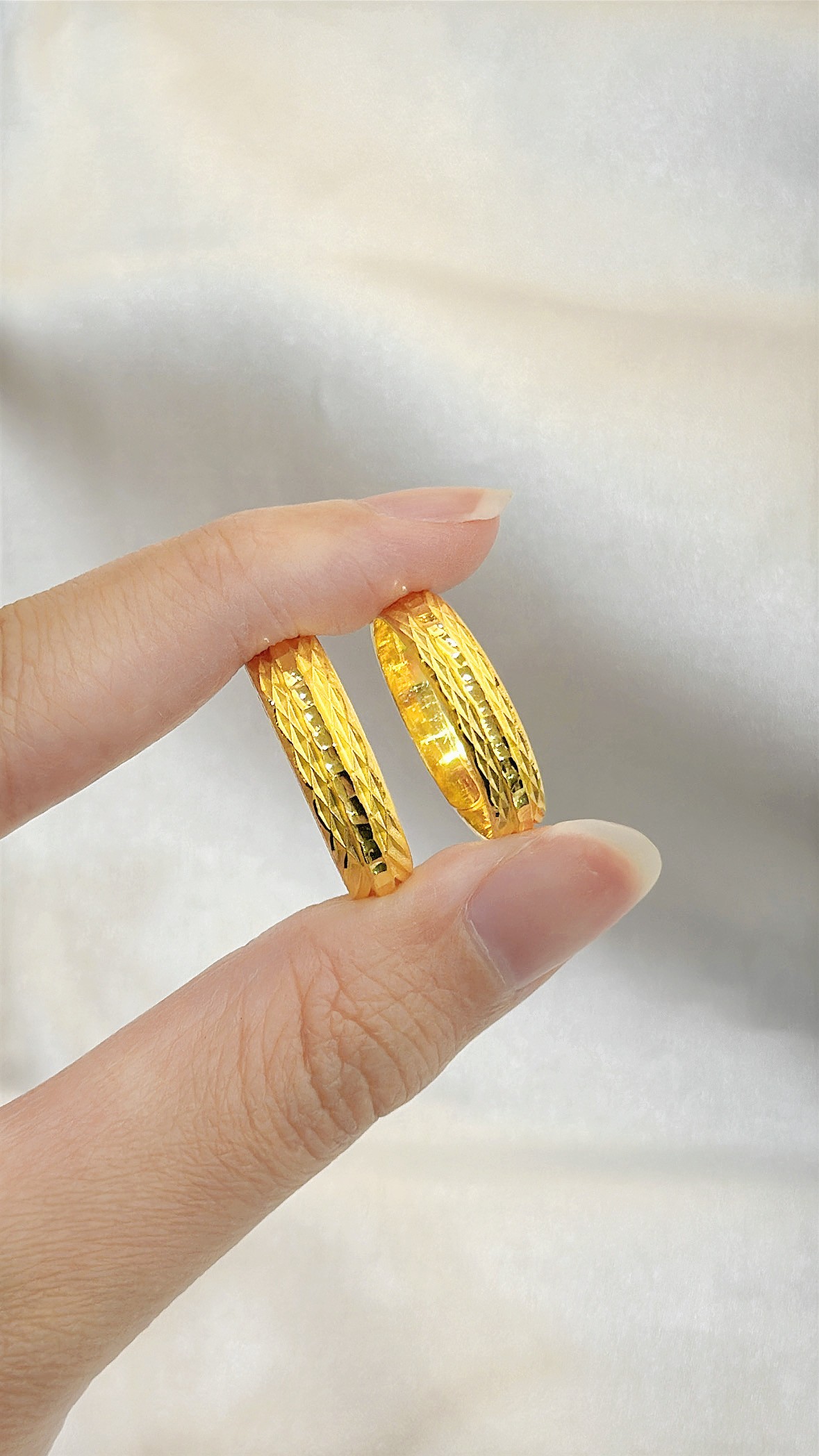 1. 53099、53100 菱格輪紋造型對戒(男:1.89、女1.11)