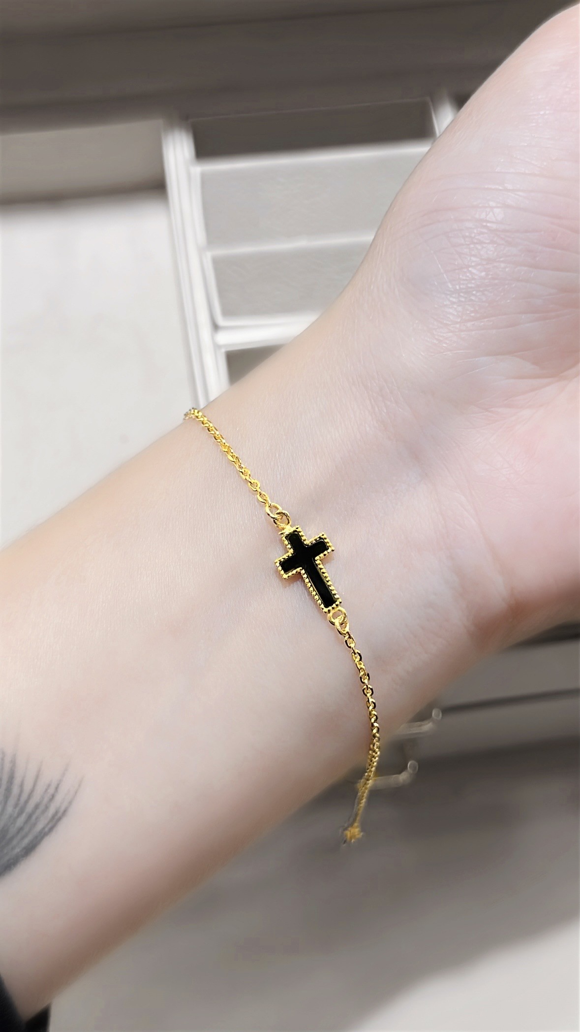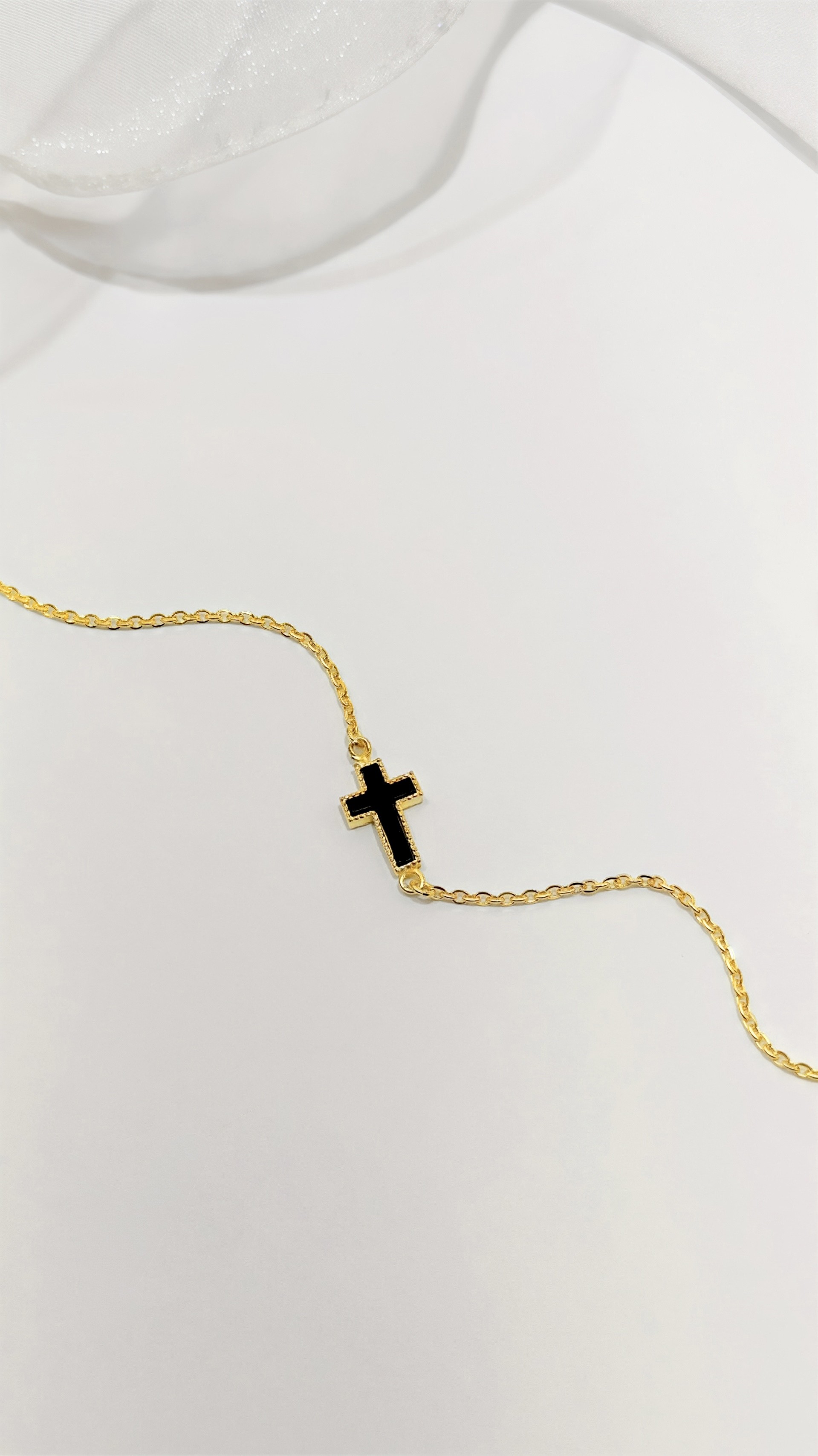 61986 十字架黑鑲石手鍊(總長約18.2)
