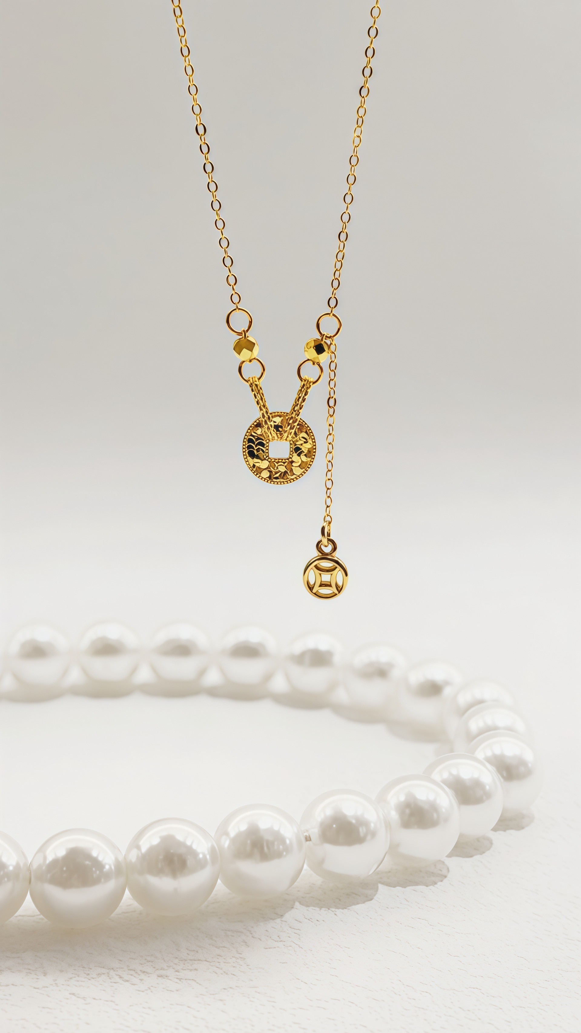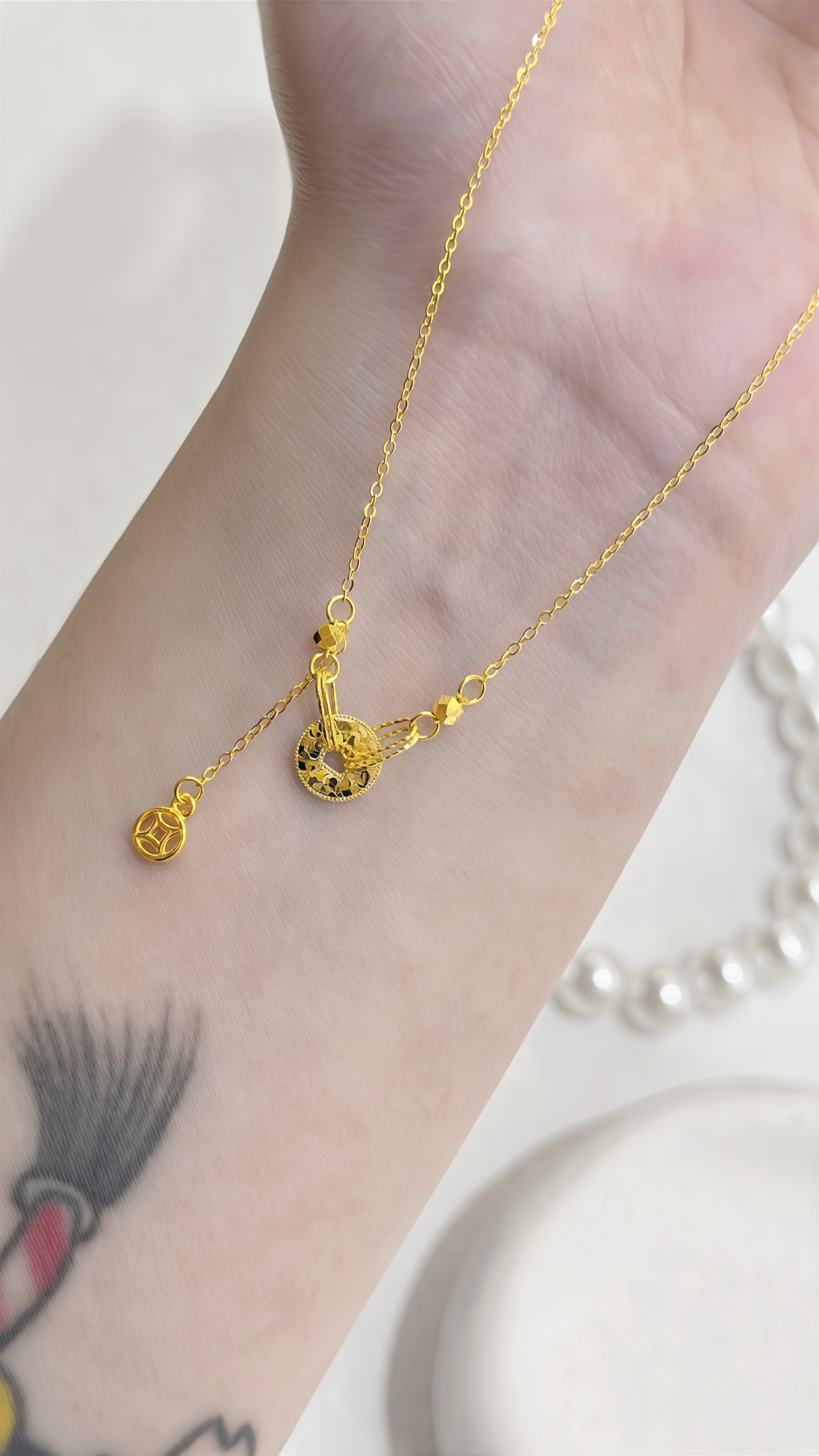 61411 5G招財古錢垂墜套鍊